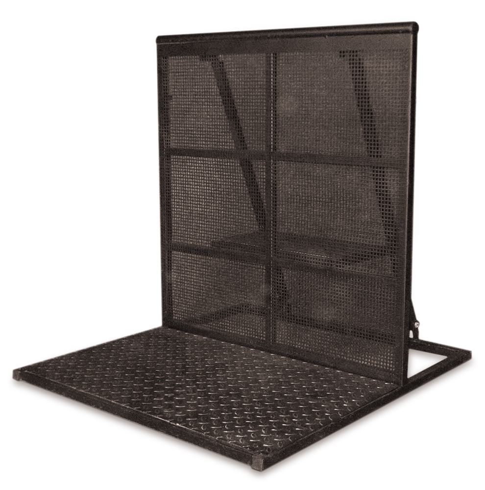 Pódiové zábrany a nášlapné bariéry slouží k bezpečnému oddělení diváků od účinkujících, nebo k vymezení prostoru pro účinkující, techniku či vymezení vstupního koridoru. Jsou vyrobené z oceli se sklopným systémem pro snadnější převoz. Konstrukčně jsou řešené tak, aby diváci svoji vlastní vahou zatížili tyto bariéry a nebylo možné s nimi pohnout. Fixují se dvoubodově k sobě navzájem a ze strany pořadatele či ostrahy je stupínek pro případný lepší přehled, nebo bezpečnostní zákrok.