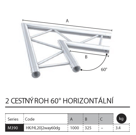 - 011 - M390 Dual - 2 cestný roh 60 horizontální