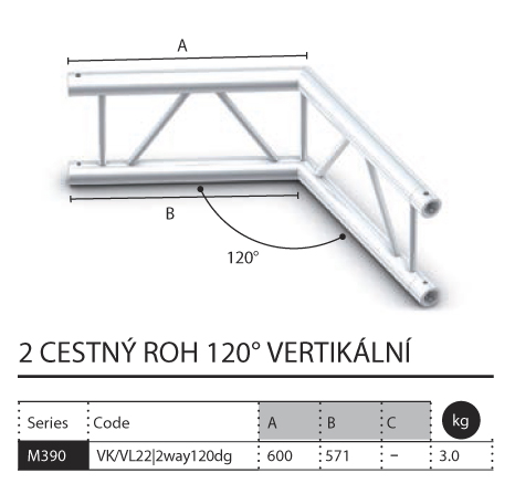 016 - M390 Dual - 2 cestný roh 120 vertikální/ ksbez DPH