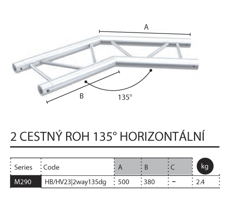 017 - M290 Dual - 2 cestný roh 135 horizontální/ ksbez DPH