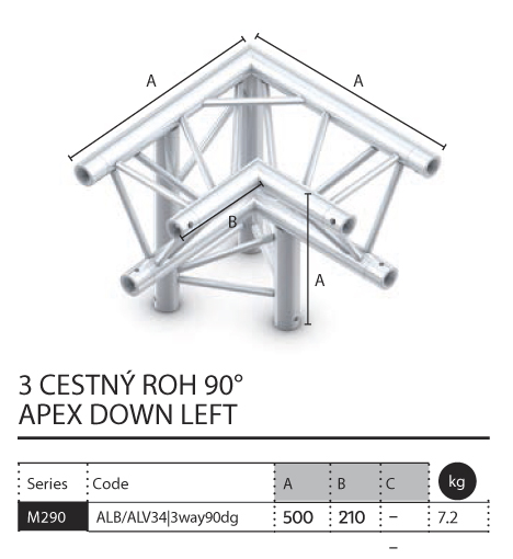 019 - M290 Trio - 3 cestný roh 90 - apex down left/ ksbez DPH