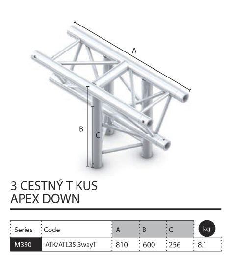 023 - M390 Trio - 3 cestný T kus apex down/ ksbez DPH