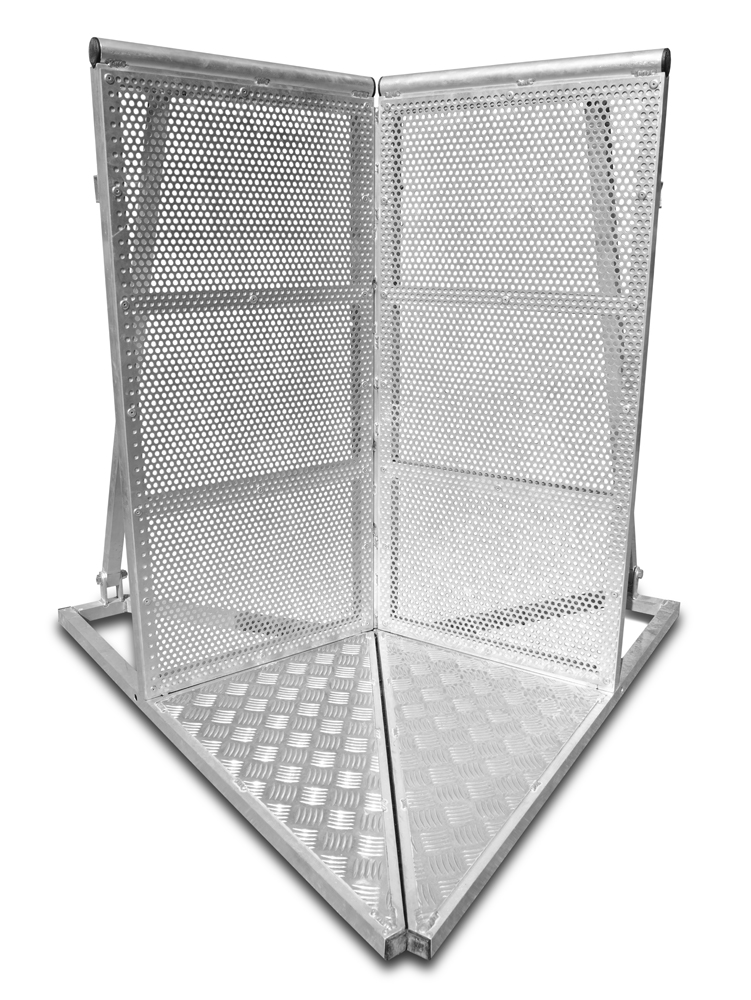 Pódiové zábrany a nášlapné bariéry slouží k bezpečnému oddělení diváků od účinkujících, nebo k vymezení prostoru pro účinkující, techniku či vymezení vstupního koridoru. Jsou vyrobené z oceli se sklopným systémem pro snadnější převoz. Konstrukčně jsou řešené tak, aby diváci svoji vlastní vahou zatížili tyto bariéry a nebylo možné s nimi pohnout. Fixují se dvoubodově k sobě navzájem a ze strany pořadatele či ostrahy je stupínek pro případný lepší přehled, nebo bezpečnostní zákrok.